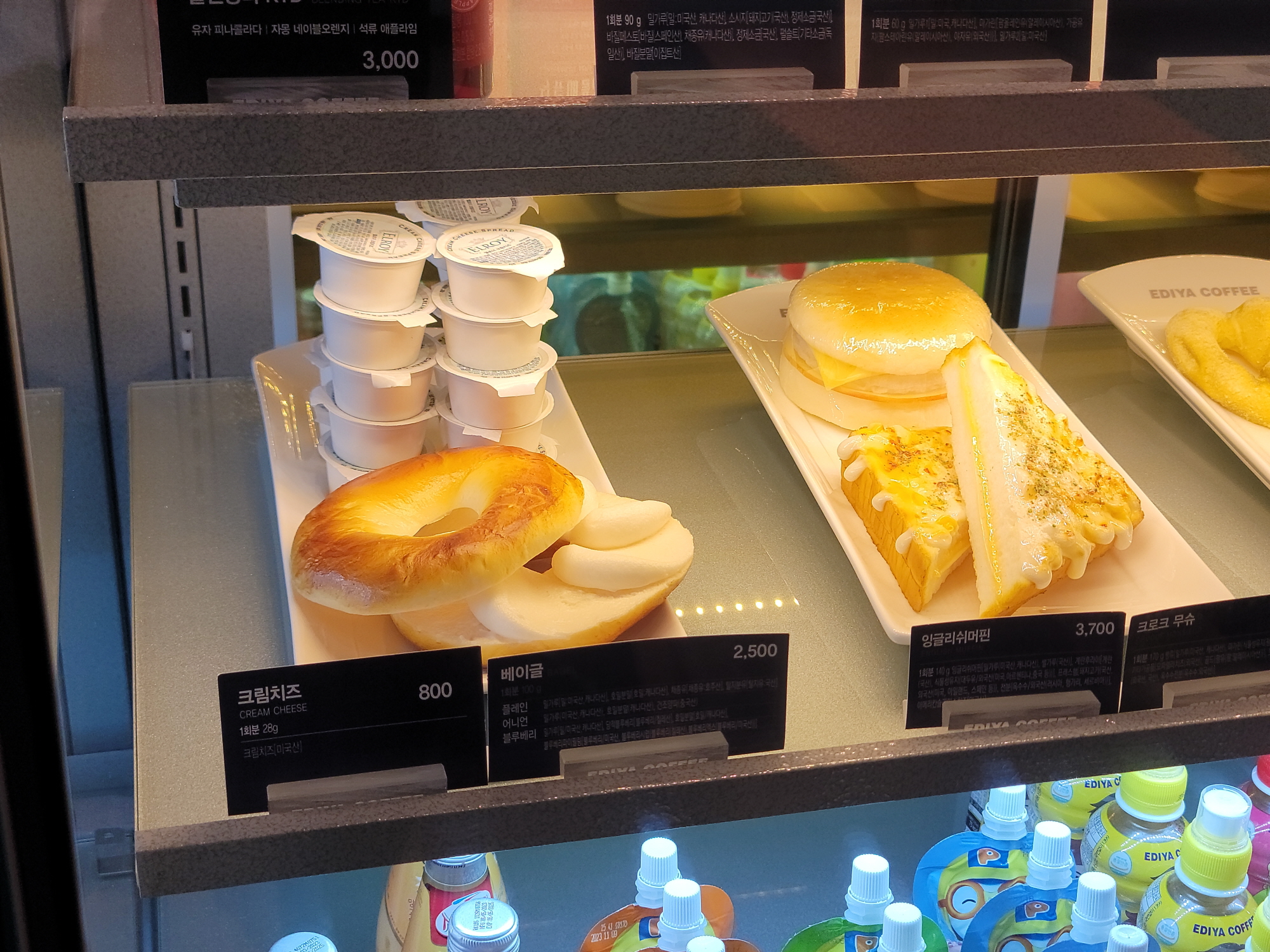 저는 아침을 안먹고 카페 이디야커피 방문하면 크림치즈랑 베이글을 함께 먹곤 해요.