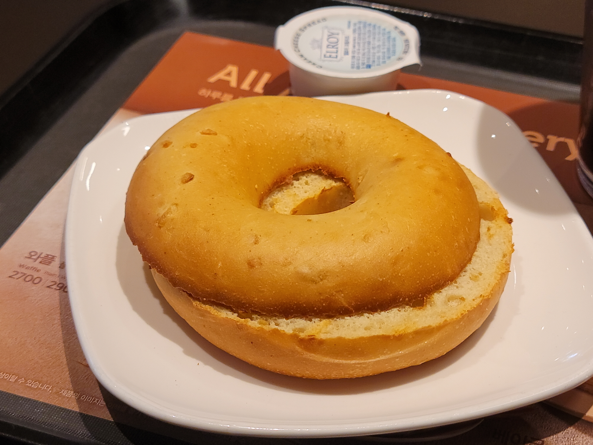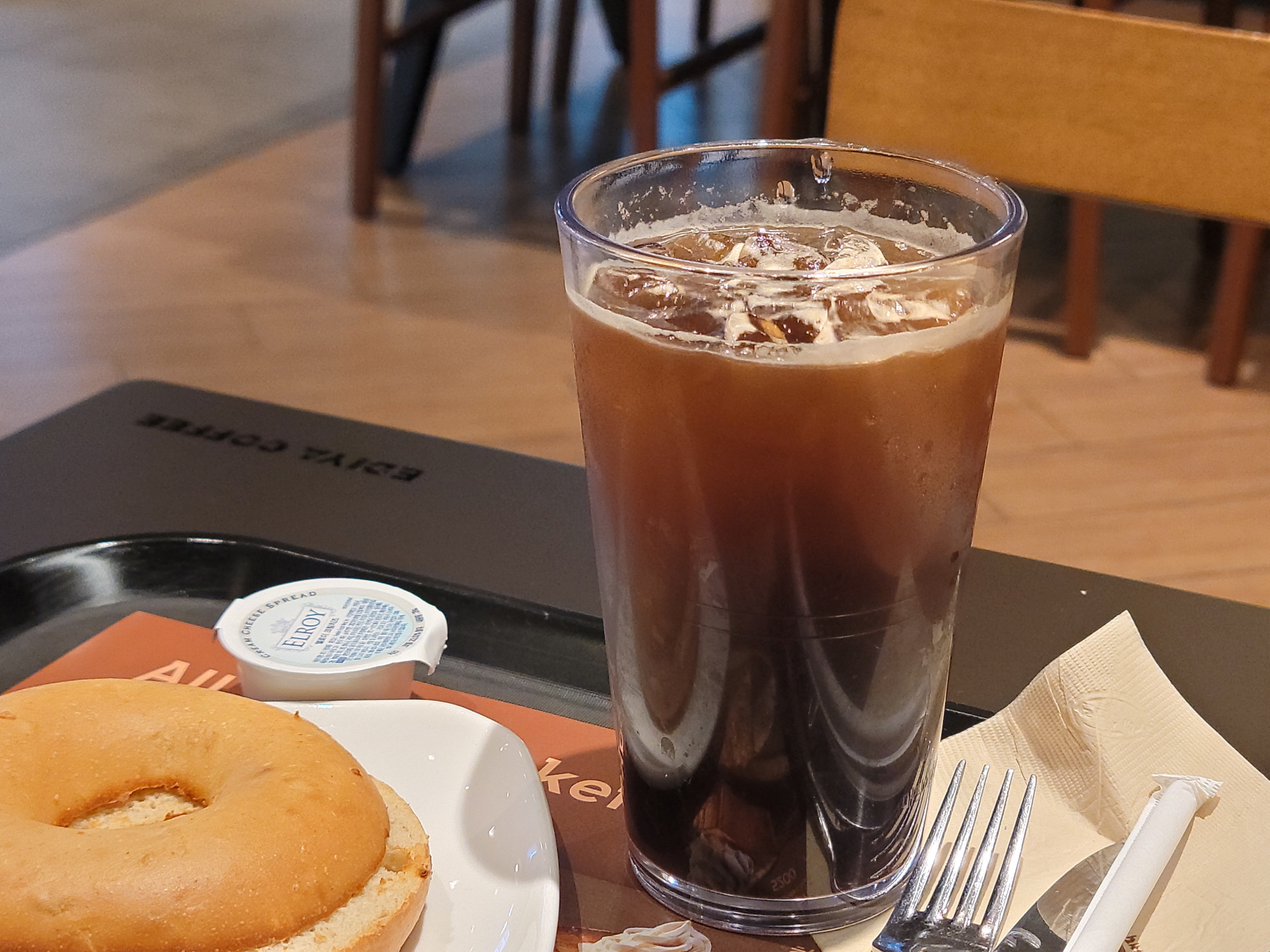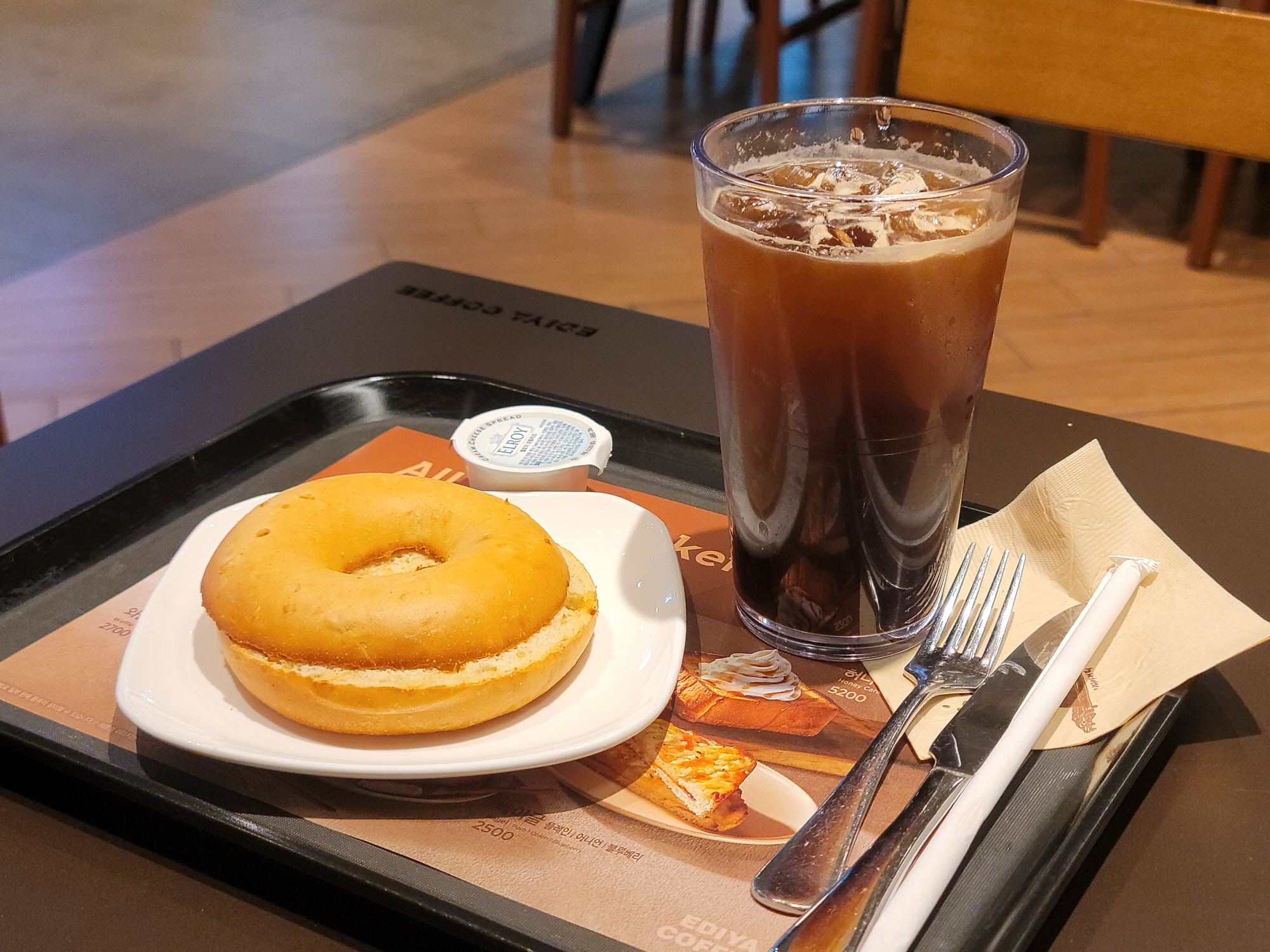 이건 저 혼자 방문했을때에요. 위에서 말한 대로 카페 아메리카노와 베이글, 크림치즈를 함께 주문했답니다.
