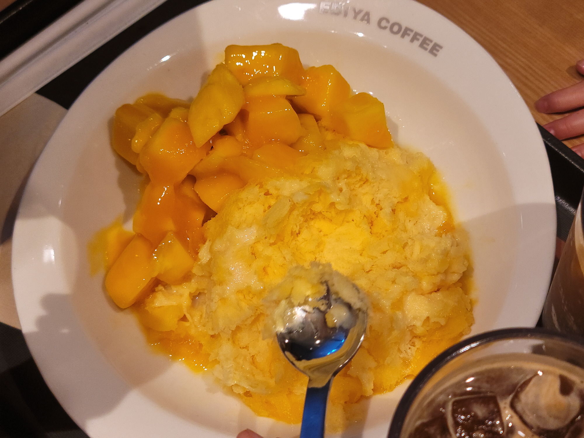 부드러운 우유 눈꽃 빙수에 달콤한 망고를 더해 시원하고 달콤하게 즐길 수 있는 빙수였어요.